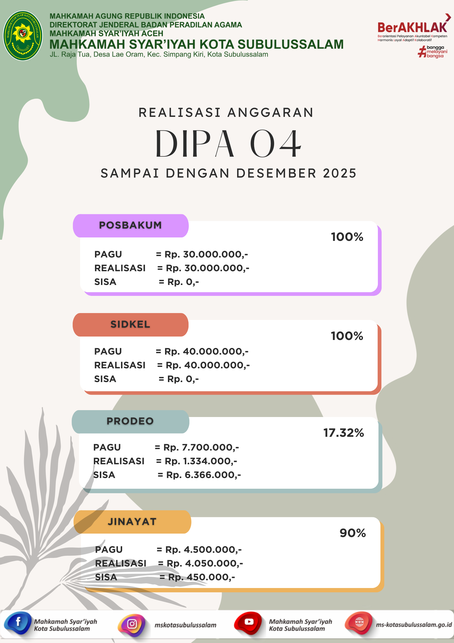 PENGUMUMAN PENGEMBALIAN SISA PANJAR (PSP) PERKARA TAHUN 2025